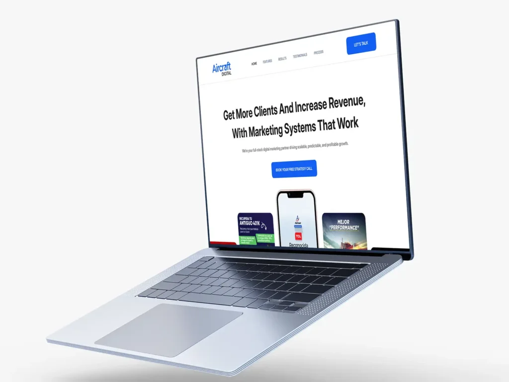 Aircraft Digital is a growth-focused marketing agency that specializes in building “predictable growth systems” for service businesses. The project centers on moving companies away from random marketing results and toward a data-driven system. This involves a full rollout of high-performance ads, conversion-optimized funnels, and smart automations that handle lead follow-up, allowing business owners to focus on high-impact operations while scaling their ROI.